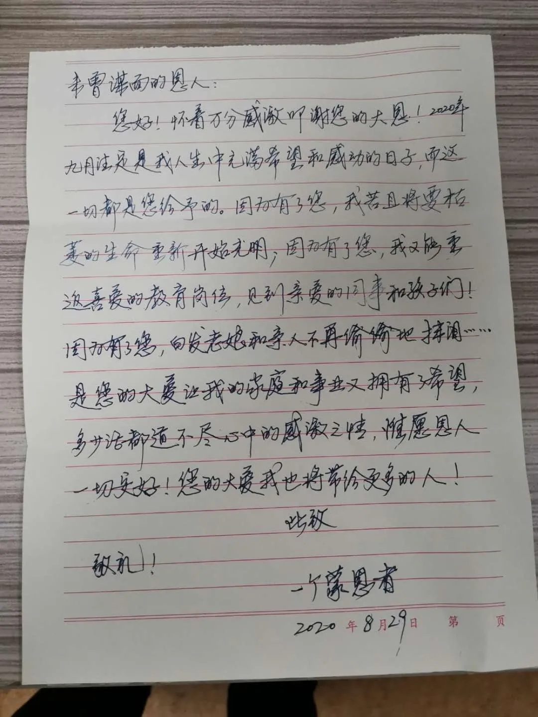 “通過這封飽含深情的信,我得知我的‘有緣人’,是一名老師。在我準備捐獻之前,他還一直堅守在工作崗位上。”杜咪動情地說,“我是一名退伍軍人,在部隊中,國家教會了我要以人民的利益為中心,要以人民的安全為使命;在盛世中,董事長教導了我,是社會上的人民給予了我們一切,我們需要常懷感恩之心,要以大愛之心承載社會責任。為此我有義務,也有責任回報社會。”