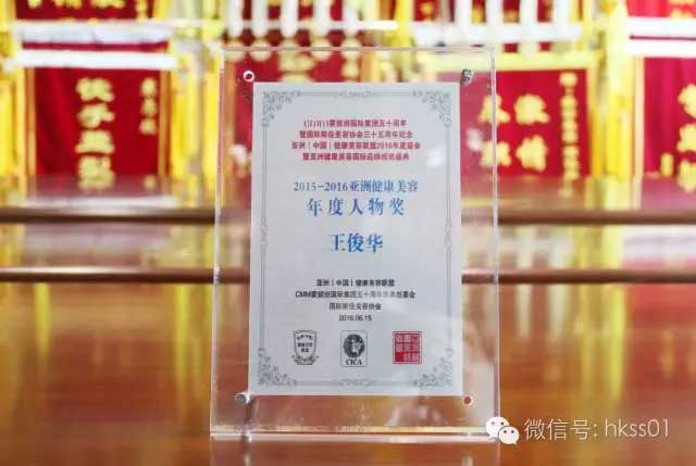 盛世集團董事長王俊華女士獲得2015-2016亞洲健康美容年度人物獎